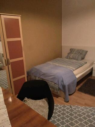 Zimmer ist voll ausgestattet siehe Bilder. WLAN ist vorhanden. Es gibt eine Küche und ein Bad zur gemeinsamen Nutzung.